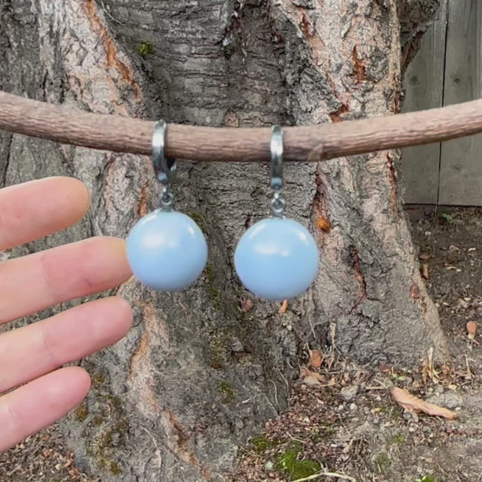 Blue opal ball earrings