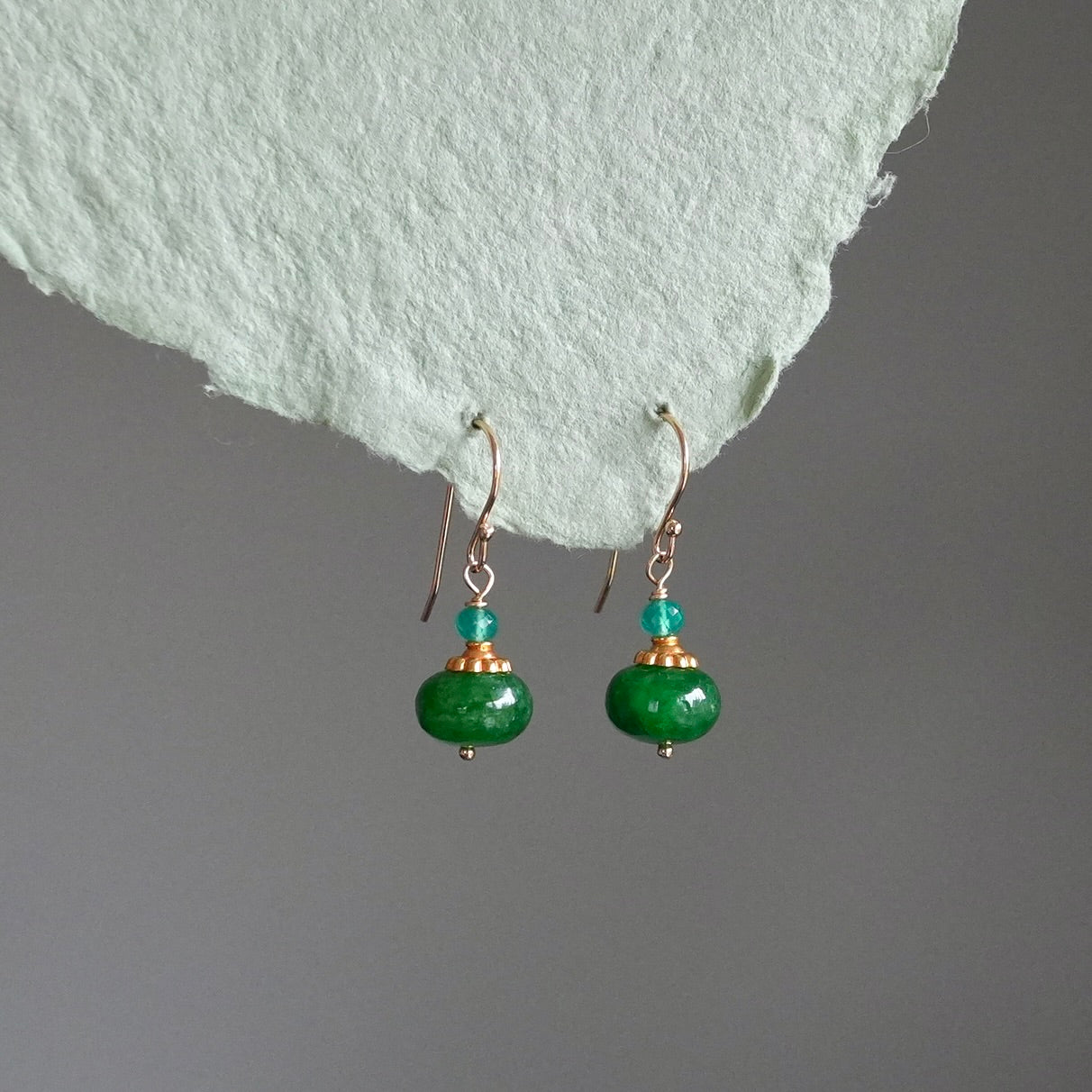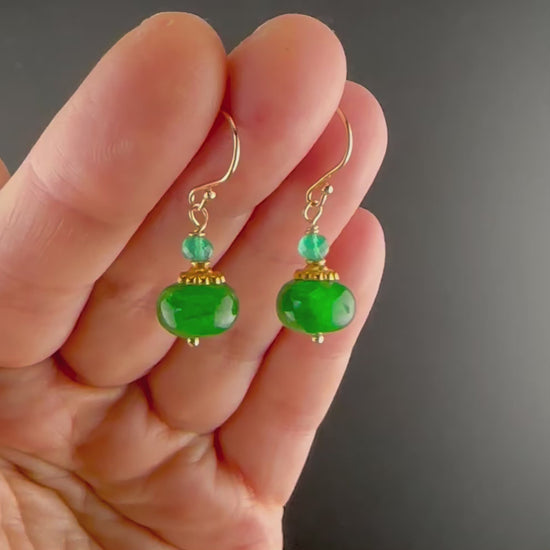 Solid gold emerald earrings with green quartz